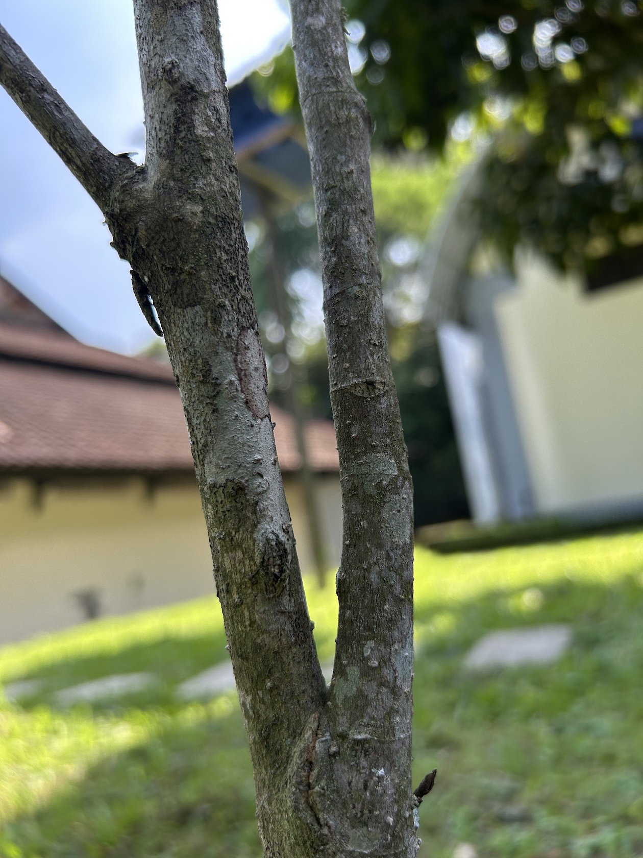 - Batang: berwarna abu-abu kecoklatan, halus, dan seringkali ditumbuhi lumut.