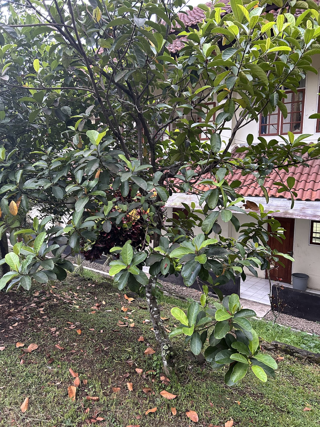 - Bentuk Pohon: Kanopi padat dan rimbun, seringkali bercabang rendah.