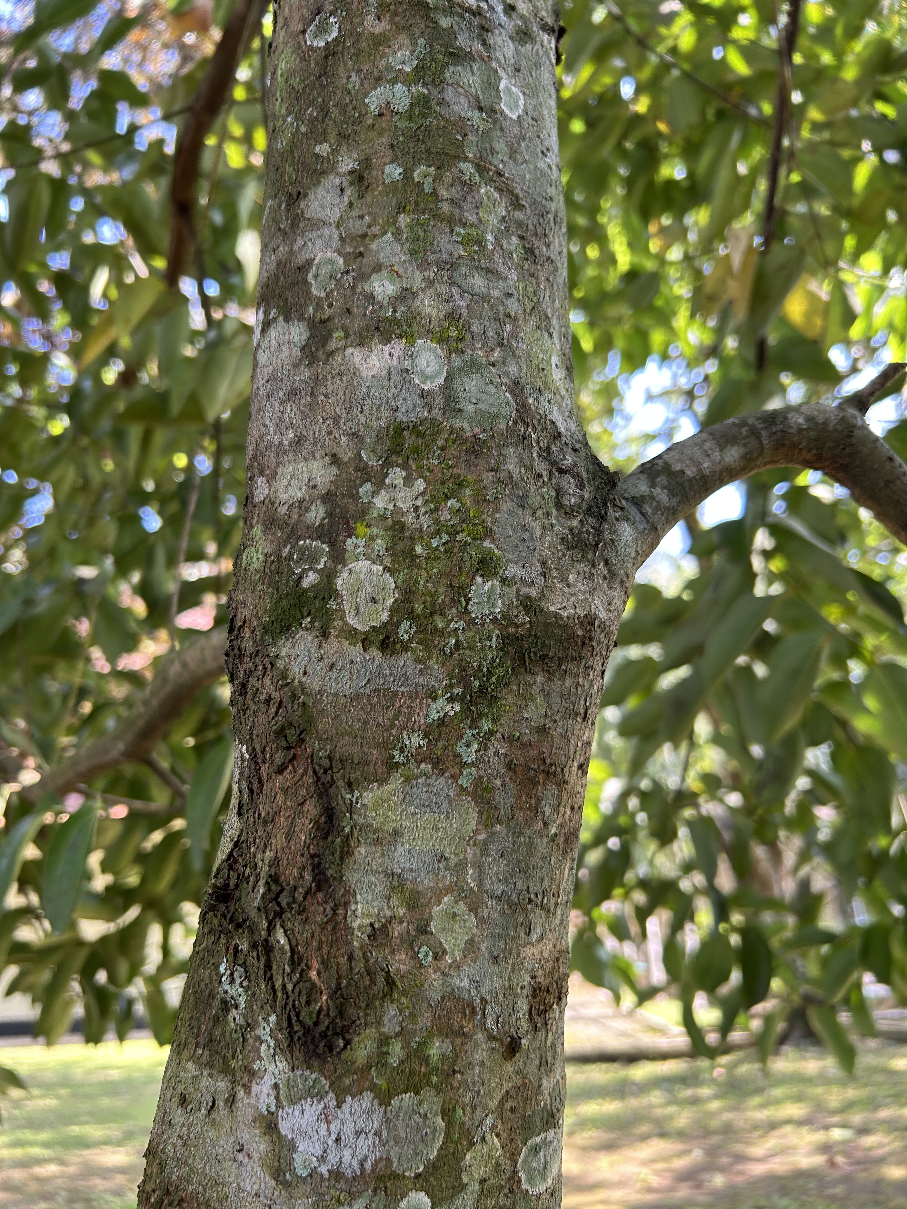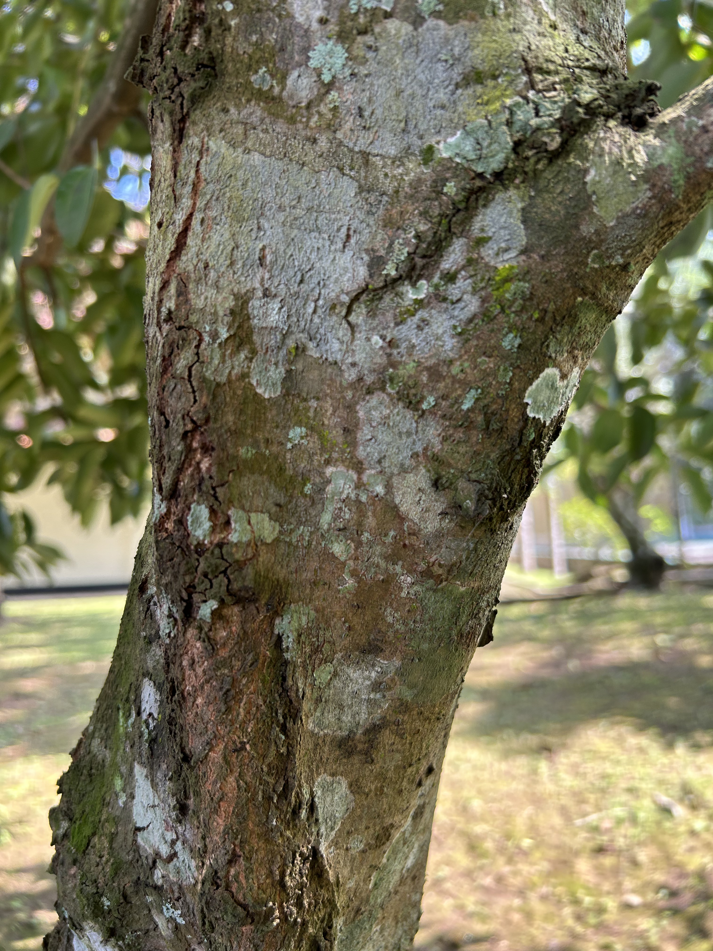 - Batang: Kulit batang berwarna cokelat keabu-abuan, halus saat muda, dan menjadi sedikit kasar seiring bertambahnya usia. Ciri khasnya adalah bagian kulit dalam yang aromatik.